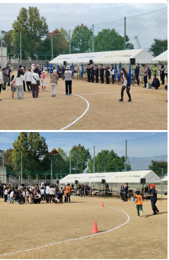 リレーや借り物競争、玉入れやパン食い競争など、子どもたちと保護者の皆様、地域の皆様が、競技を通じて、交流を深めることができました。