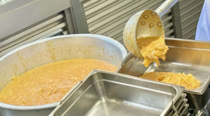 ツナポテトオムレツは、鶏卵、ツナ、じゃがいもを使用し、塩、こしょうで味つけし、焼き物機で焼いています。(写真2、3枚目)