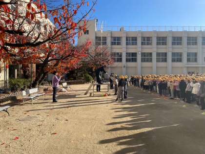 毎週月曜日に行っている児童朝会で、先日行われた「かけあし大会」の表彰がありました。