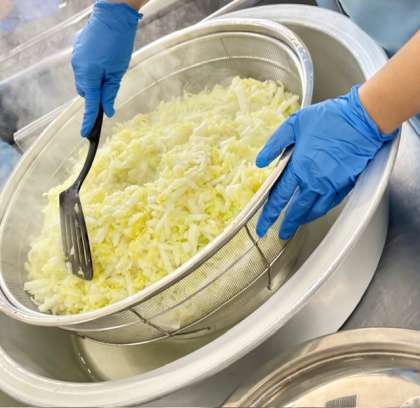 はくさいのおひたしは、はくさいにだし、砂糖、うすくちしょうゆを合わせた調味液をかけ、あえています。(写真3枚目)