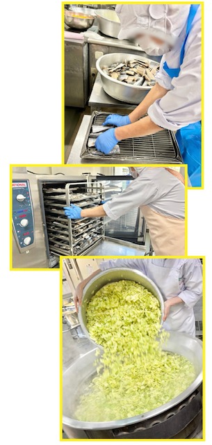 さごしのしょうゆだれかけは、料理酒で下味をつけ、焼き物機で焼いたさごしに、みりん、こいくちしょうゆで作ったタレをかけています。(写真1、2枚目)