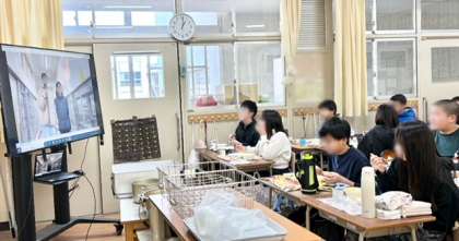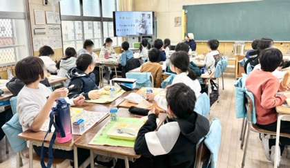 今日は給食週間の最終日でした。この週間中に、各クラスで動画を視聴しています。給食委員会の児童が給食調理員さんにインタビューをしたものをもとに作成した動画で、給食調理員さんの1日の様子などがわかる内容になっています。
