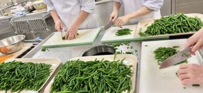 ベーコンとさんどまめのソテーは、ベーコン、さんどまめ、コーンをいため、塩、こしょうで味つけしています。(写真3枚目)