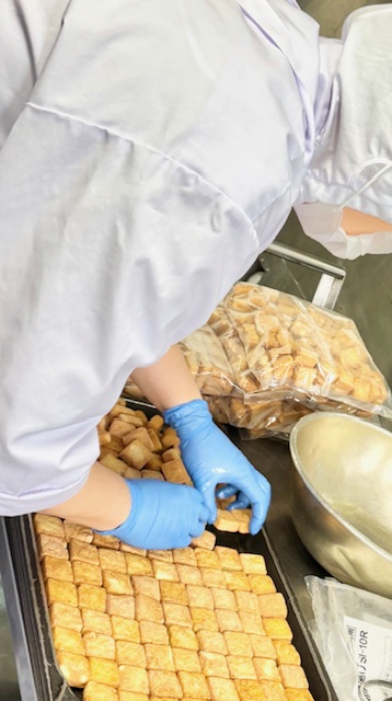 あつあげのピリ辛じょうゆかけは、焼き物機で焼いたあつあげに、砂糖、こいくちしょうゆ、トウバンジャンで作ったタレをかけています。(写真3枚目)