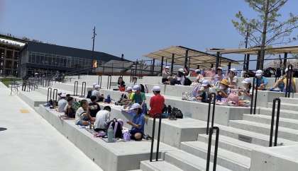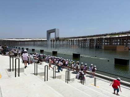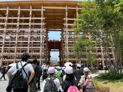 お天気に恵まれ、大屋根リングの上を歩いたり、美味しいお弁当を食べたり噴水ショーを見たりしました。