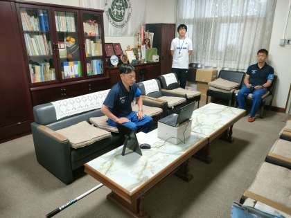 セーフティ淀川の方が、不審者役となり、職員が対応をしました。