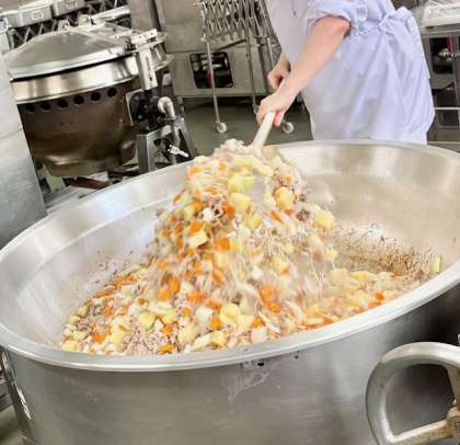 みそ肉じゃがは、豚肉、じゃがいも、糸こんにゃく、たまねぎ、にんじん、青みにグリンピースを使用したみそ味の肉じゃがです。(写真2枚目)