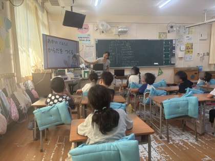 1年生は食に関する指導で、すききらいなく食べることの大切さを学びました。すききらいせずに栄養バランスよく食べることで、元気に過ごすことができることを知り、食べ物のはたらきによるグループ分けを練習したり、苦手な食べ物が給食に出てきた時に、どのように工夫して食べているかを発表したりしました。