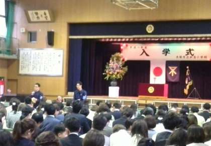 入学式終了後には、「学校生活について」「PTAについて」の説明の後、セーフティーよどがわのご担当者の方から、「子どもの安全と防犯について」のお話をしていただきました。