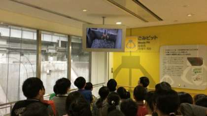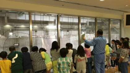 ごみクレーンを使って、ごみを焼却炉に投入しています。