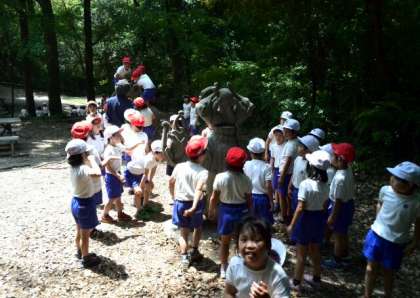 森林探検と彫刻の見学。