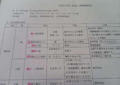 その際発見した、30か所以上にわたる改善箇所をリスト化し、施設整備委員会を開催しました。