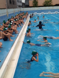 先週の木曜日、残念ながら雨天のため、入れなかった4年生。今日、無事プールに入れました♪ さすが!4年生!! 静かに先生の指示を聞いて、しっかり学習ができていました☆