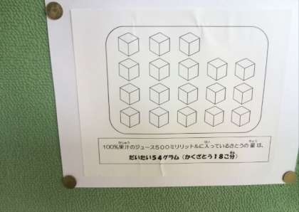 100%果汁のジュース(500ml)には、なんと角砂糖18個分がはいっているそうです。