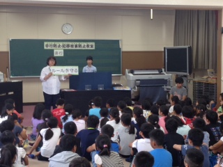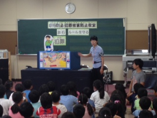 3時間目、大阪府警少年サポートセンターの方をお招きして、5年生を対象に非行防止教室が行われました。ただ単に話を聞くのではなく、ペープサート(紙人形劇)もしていただき、子どもたちも興味をもって聞いていました。万引きは犯罪であること、「ちょっとぐらいなら…」という気持ちが犯罪につながる可能性があることなど、夏休みに入る前に、多くのことを学んだ5年生でした。