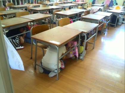 事前指導を行った後、大規模災害が発生したという想定で、避難訓練を行いました。