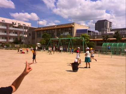 子どもたちと一緒に運動場を走り回っていると、気持ちの良い汗をかくことができますね。それと同時に、子どもたちのパワーに脱帽です。