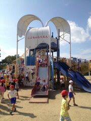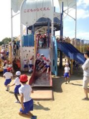 今日は、たくさんの子どもたちが服部緑地公園に来ています。
