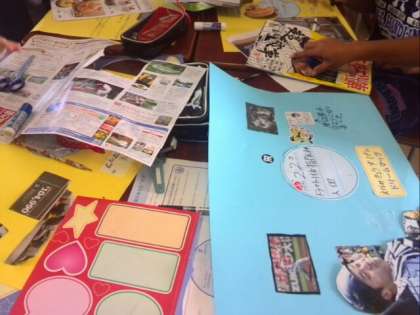 真剣な表情で「夢への地図」を描いている子どもたち。