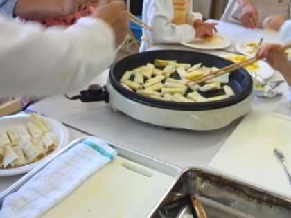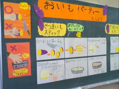 友だちと協力して、安全に気を付けて、みんなで楽しく調理をしました。