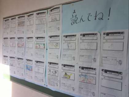 図書委員会の児童の「おすすめの本」が校内に掲示されています。