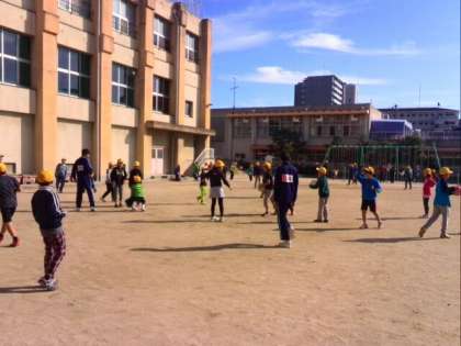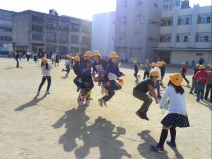 休み時間は、みんなで息をあわせて大なわの練習です。