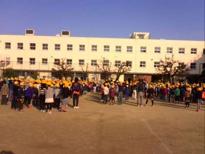 児童朝会でレクレーション。