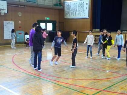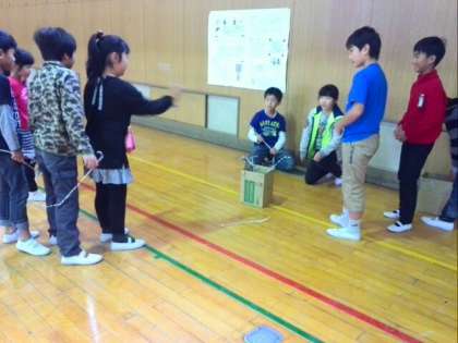 今日は、5年生が3年生に遊び方や楽しみ方を教えてくれています。