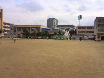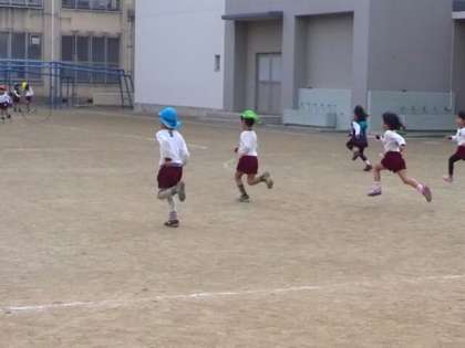 お昼休みに新高幼稚園の園児たちが、本校校庭で体を動かしています。