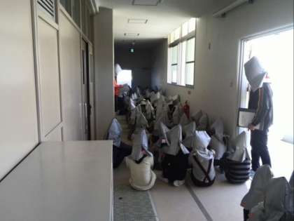 避難終了後、講堂で振り返りを実施。
