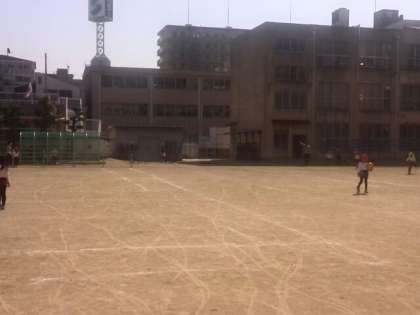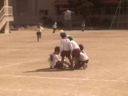 校庭を開放し、新高幼稚園の園児たちが体を動かしています。