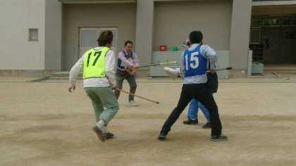 笛の合図で周りに知らせ、応援を呼びます。