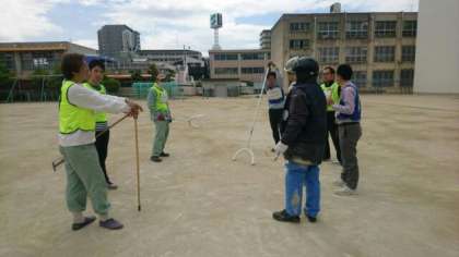 現場で振返り 〜 不審者侵入避難訓練
