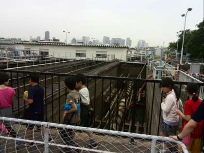淀川の水をきれいにする施設をみて、ビックリする子どもたち!
