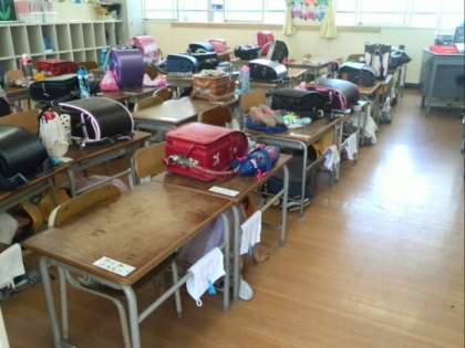 揺れがおさまったら、運動場へ避難。