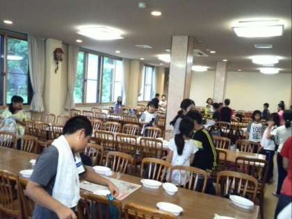 急遽、宿のなかで食べる準備!