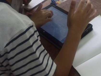 タブレットを使用した授業。