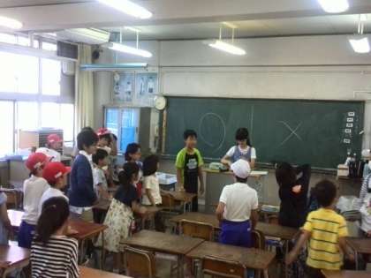 6年生がリーダーシップを発揮して、○×クイズを実施。