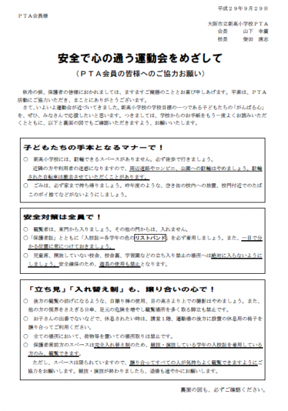 安全で心の通う運動会の実現のため、全員でステキな1日にしましょう。