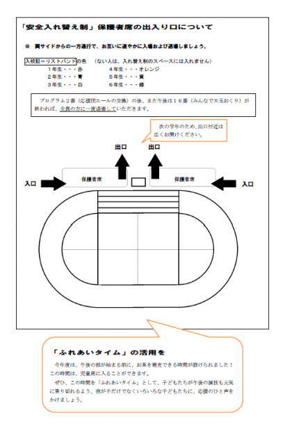 今年度は、昨年の学びも踏まえ、保護者席の入れ替え制にチャレンジします。