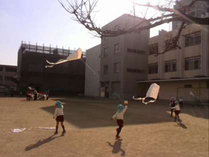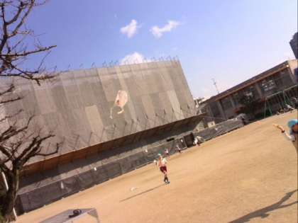 新高幼稚園の園児に遊んでもらえるように、昼休みに運動場を開放しています。