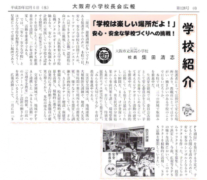 大阪府小学校長会広報に、本校のSPSの活動を掲載いただきました。