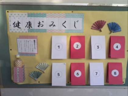 保健室前に突如あらわれた健康おみくじ。
