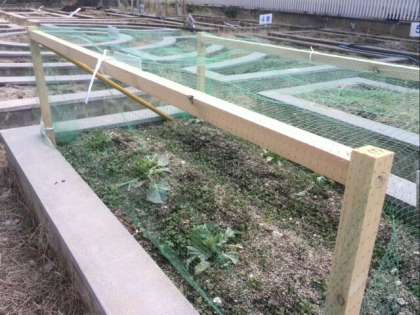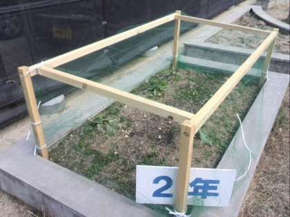 カラスから守るため、管理作業員さんが学習園を守る囲いを作ってくれました。
