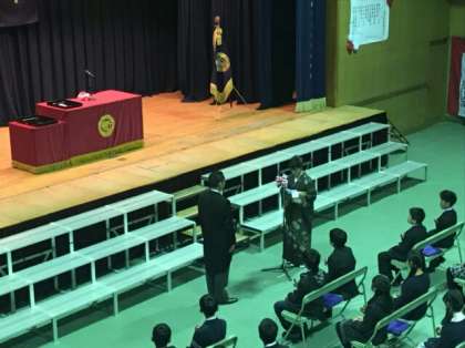PTAより記念品として、学用品とお祝いのお花が贈られました。