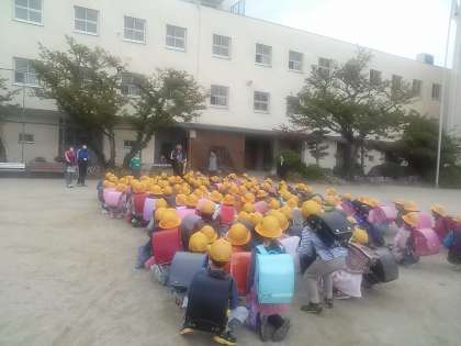 しばらくの間、集団下校をします。1年生の皆さん、安全に下校する方法を身につけ、通学路を覚えようね。