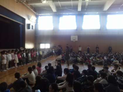 1年生と2〜6年生の対面式、「お兄さん、お姉さんよろしくお願いします!(^^)!」