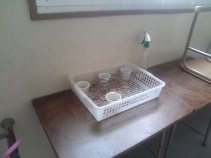 発芽の実験中です。発芽するには、何が必要なのかを調べています。