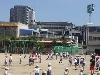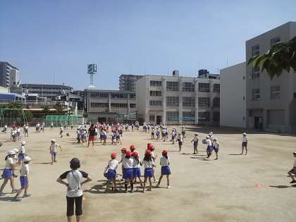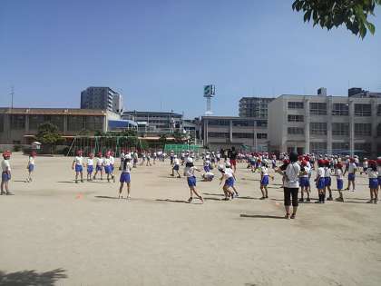 3クラス合同ドッジボールをしました。120人あまりでのドッジボールは圧巻です。