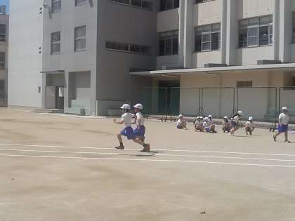 今日から始まった「新体力テスト」 運動場では50メートル走のタイムを計っていました。腕をしっかりと振る・ゴールで止まらず駆け抜けるといったことがタイムを縮めるコツのようです。